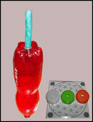 Potřebujete plastovou láhev od kyselky, doporučujeme jeden a půl litru, deset centimetrů hadičky na pitnou vodu a tři víčka na uvedenou láhev.